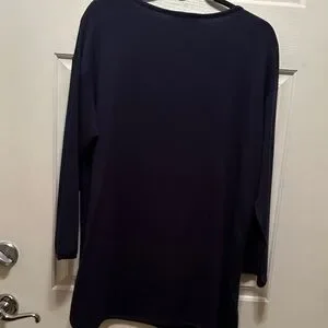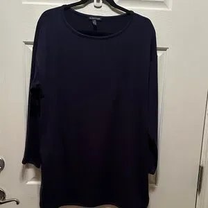 Eileen Fisher Deep Navy Long-Sleeve Scoop Neck Long Line Tunic Top Size Small