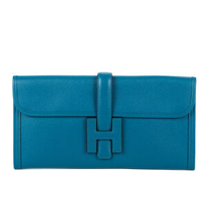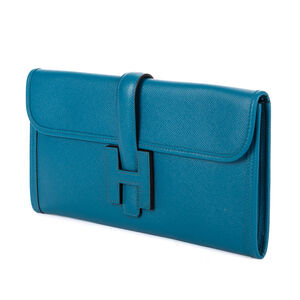 Hermès Clutch Jige Elan Clutch 29 in Blue Epsom Leather and None hardware. The product is in Perfect Condition (AA).