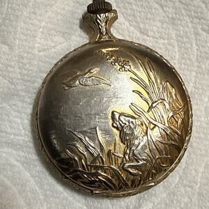 Vintage - Swiss Made - JC Penny Mechanical Wind Up Pocket Watch - Duck Hunt Dog