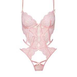 For Love and Lemons Pink Creamsicle Lace Thong Teddy Bodysuit