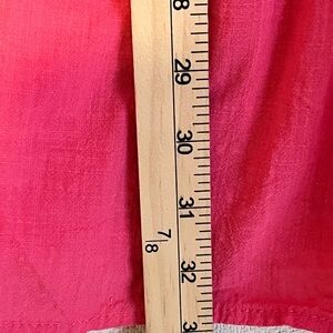 A vibrant hot pink tiered dress with a relaxed V-neck and long sleeves. Lightweight, flowy fabric for comfortable all-day wear. Elastic cuffs and tiered skirt add subtle shape and gentle movement. Easy to style for casual or dressy occasions.