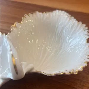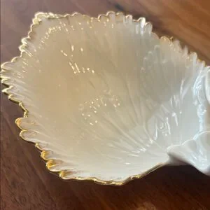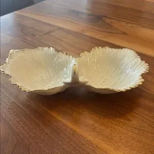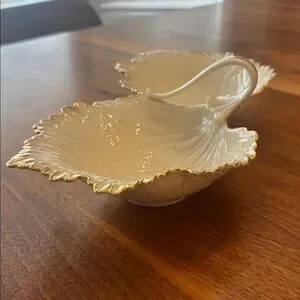 Lenox Double Leaf Leaves Cream Gold Candy Trinket Catch All Dish Made in USA