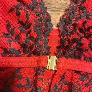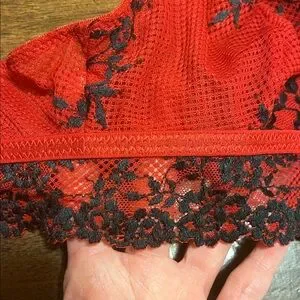 La Vie En Rose Semi-Sheer Red and Black Lace Bralette