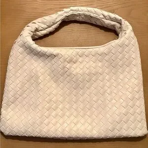 Elegant cream woven shoulder bag with a soft handle. Lightweight and versatile for daily wear. Clean, minimal design complements many outfits.