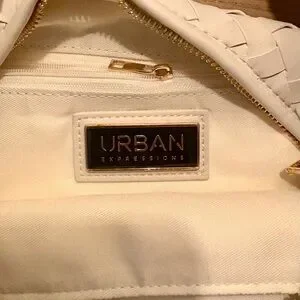 Urban Expressions- Woven Handle Shoulder Bag - Cream
