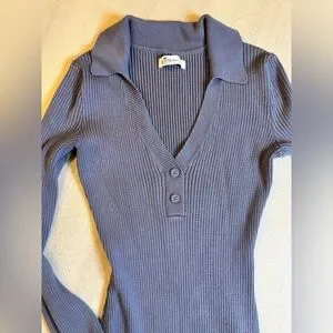 Hollister’s sleek navy ribbed dress with a flattering V-neck and polo collar. Long sleeves and button-front detail create a polished, versatile look. Soft stretch fabric offers comfortable, form-fitting wear. Perfect for day-to-night styling in blue. Has stretch. **no tag, but more likely cotton. Size XS