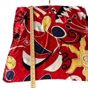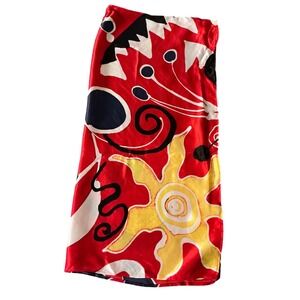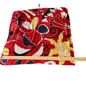 Chicos 100% Silk Square Scarf Red Abstract Sun Celestial Print RN 79984