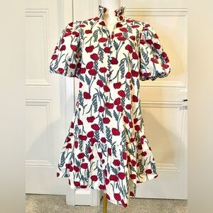 Hyacinth House Tuckernuck Midi Dress Red Floral Print Puff Sleeves Small NWT