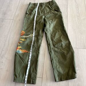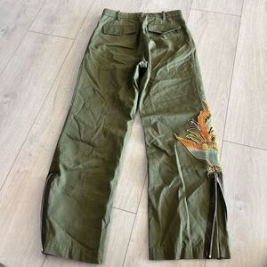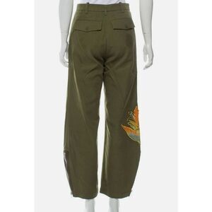Sandro Glenwood Embroidered Wide-leg Pants in Olive Green Size 36
