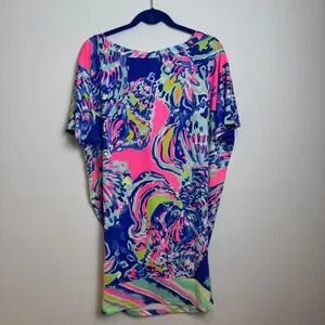 Lilly Pulitzer Lowe Dress M Colorful Print Stretch Preppy Coastal Resortwear