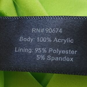 • Material: body 100% Acrylic; Lined 95% polyester, 5% Spandex.