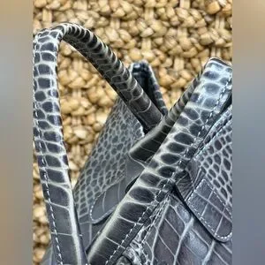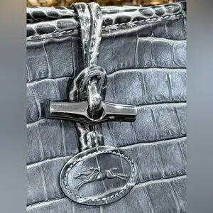 Longchamp structured croc-embossed leather tote with dual top handles. Subtle logo plaque and secure zip pull. Sleek, versatile silhouette for daily use.