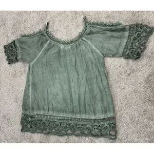 Belle France Green Lace Tunic Top Woman's Sz L Whimsy Goth Fairy Knit Italy