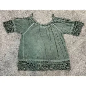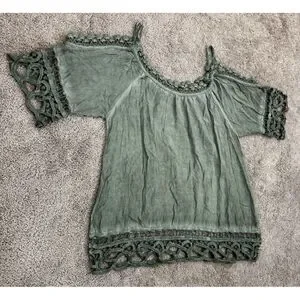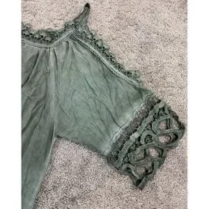 Belle France Green Lace Tunic Top Woman's Sz L Whimsy Goth Fairy Knit Layered
