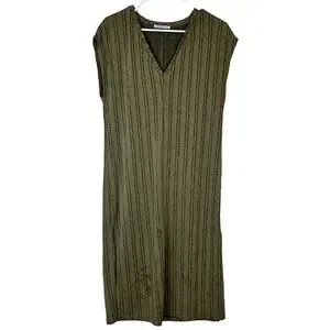 Zara Trafaluc Women's Green Brown Loose Fit Striped Shift Dress Size S