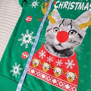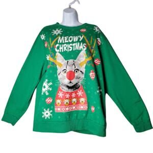 Ugly Christmas Sweater Sweatshirt Green Meowy Christmas Cat Size Large Party