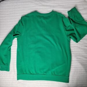 This is a gently preowned Well Worn Los Angeles women's sweatshirt in size Large. Festive bright green with a funny "Meowy Christmas" cat graphic featuring reindeer antlers, Christmas lights, ornaments, and a red nose. Perfect for holiday parties, ugly sweater contests, or cozy lounging all season long.