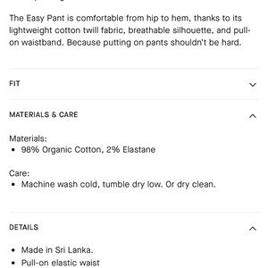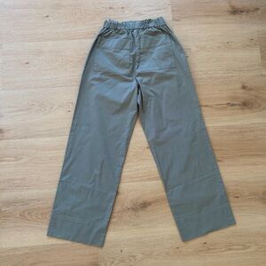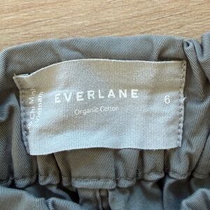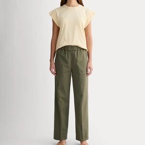 Everlane Easy Pants in olive green. Elastic waistband with gathered detail. Lightweight organic-cotton fabric. Casual and easy to wear.