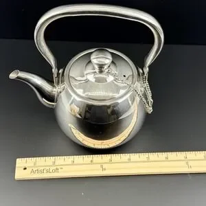 Potobelo Italia Stainless Steel Teapot Kettle 1L 1Qt Mirror Finish Chain Lid