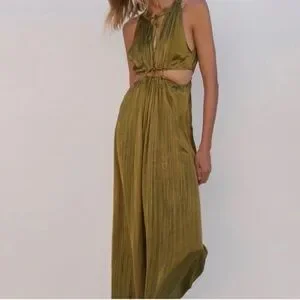 Zara Olive Green Satin Maxi Dress with Cutout