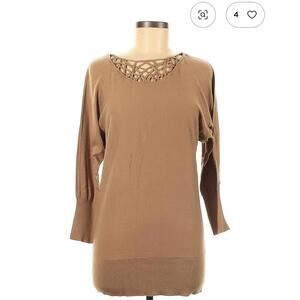 Brown Long Sleeve Sweater with Lattice Detail