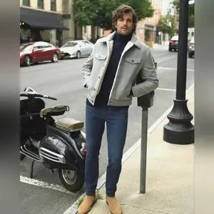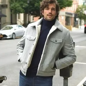 Stylish and versatile gray wool blend trucker jacket for men. Perfect for casual outings and layering. Durable and comfortable for everyday wear.