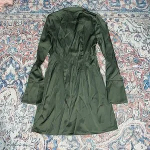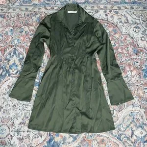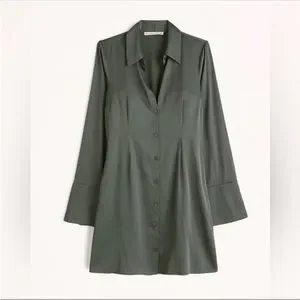 Abercrombie & Fitch Green Satin Long Sleeve Shirt Dress size XXS. Color is a bit more olive green in person than in the stock photos (most like actual photos). In excellent used condition and from a smoke-free home.