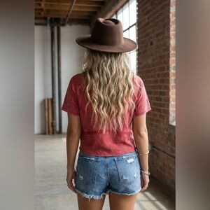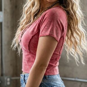 NWT Very J Mineral Washed Exposed Seam Cropped Patch Back Tee Crop Top Red