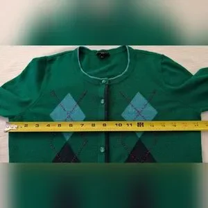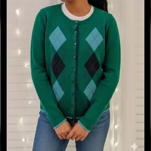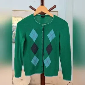 Talbot's Womans Green Cardigan Argyle 5% Cashmere Size SP