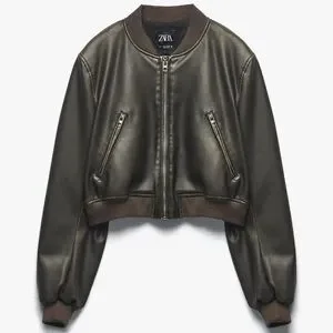 Zara Faux Leather Bomber Jacket