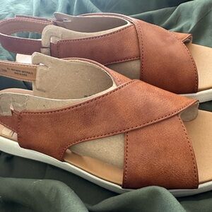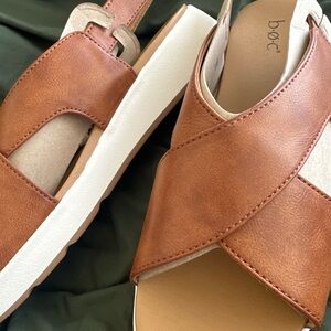 b.o.c Born Mattie’s Crisscross Slingback Women’s Faux-Leather Brown Sandals