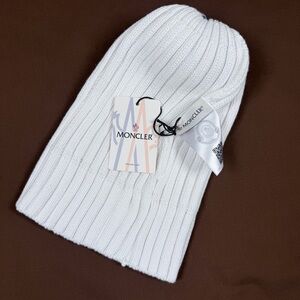 New Women’s Moncler Ribbed Knit White Beanie with Pom-Pom