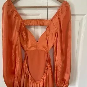 Hello Molly NWT Satin Open Back Cut Out Long Sleeve Orange Mini Dress Medium