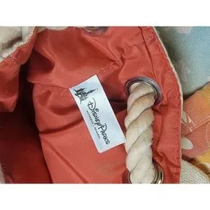 Disney Parks Floral Hawaiian Canvas Bag Drawstring Backpack Rainbow 15.5x12x5