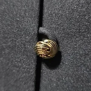 Elegant black blazer with gold buttons. Perfect for formal occasions. Padded shoulders.