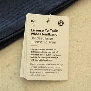 Lightweight athletic headband by lululemon athletica. Breathable fabric with subtle texture. Reflective logo for visibility. Stretches for a secure fit. Simple, versatile workout accessory.