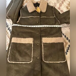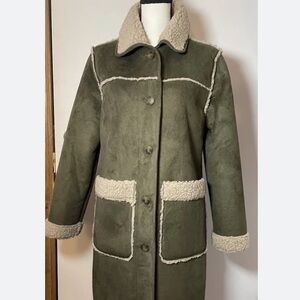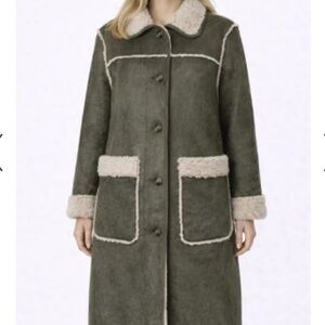 Michael Michael Kors faux shearling coat in olive / hazelnut color.