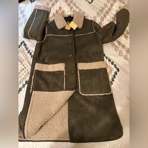 Michael Kors Faux Shearling Coat Olive Hazelnut Warm Winter Size Large. NWT.