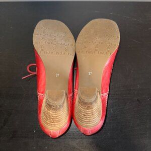 Fidji Red Leather Lace Up Heels Laser Cut Geometric Cutout Retro Art to Wear 37