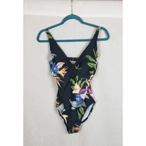 La Blanca Swimwear One Piece Black Floral Twist UPF 50+ Beach Resort Vacation