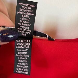 This Victoria’s Secret robe features a kimono style sleeve, red color, the word “LOVE” in a heart on the back, tie closure, ruffled front and sleeves.