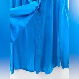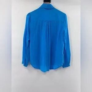J. Crew 100% Re-Imagined Silk Tie-Neck ButtonUp Blouse in Turquoise Blue Size M