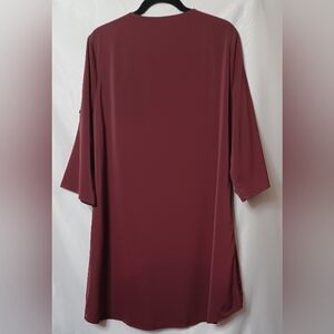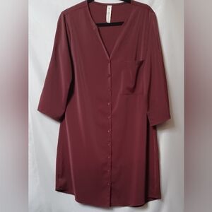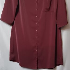 B Women's Burgundy V-Neck Button Front Midi Dress. Size L