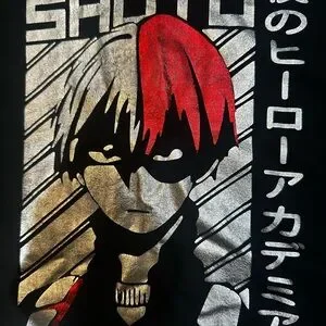 Vintage Y2K Shoto Todoroki My Hero Academia Black Graphic T-Shirt size M