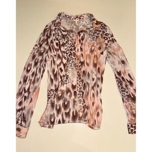 Guess Clouis Sheer Leopard Print Fitted Button Up Blouse M Animal Print Top