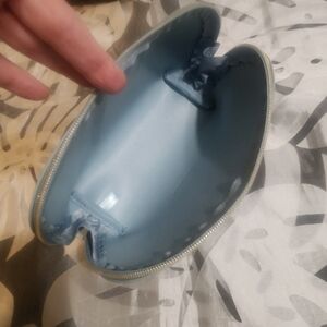 Sleek pastel blue Perricone MD cosmetics case. Features a brand embossed logo. Side to side zipper closure. Lightweight and travel-ready.