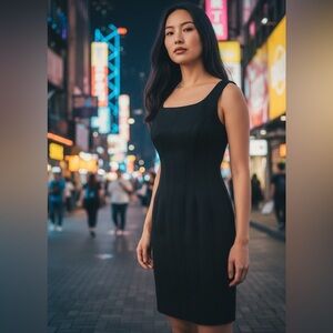 Chic black midi dress by Tommy Hilfiger. Perfect for evening outings.