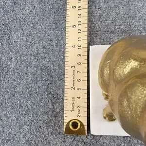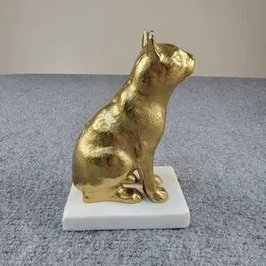 Vintage 6" Gold Textured Cat Figurine Statue on White Marble Base Bookend Decor
