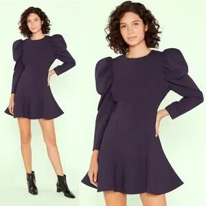 Tags: LIKELY, Alia Dress, Navy Blue, Size 10, US 10, Fit and Flare, Puff Sleeve, Scalloped Hem, Flounce Hem, Favorite Stretch, Cocktail Dress, Wedding Guest, Party Dress, Mini Dress, Structured, Contemporary, Preppy, Romantic.