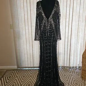 Vintage Black Beaded Cocktail Evening dress. Size 20.